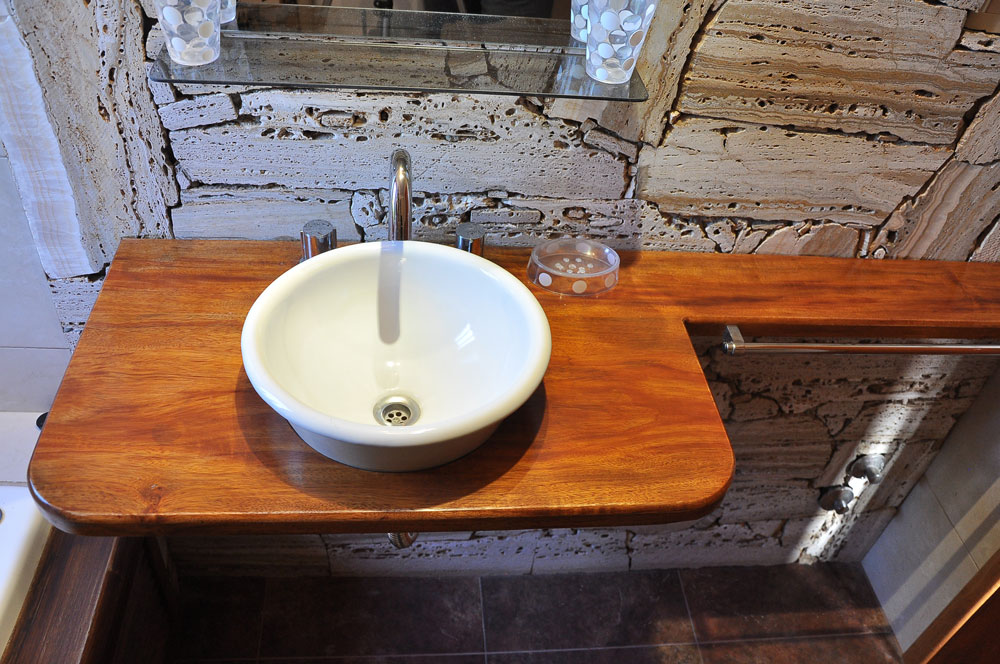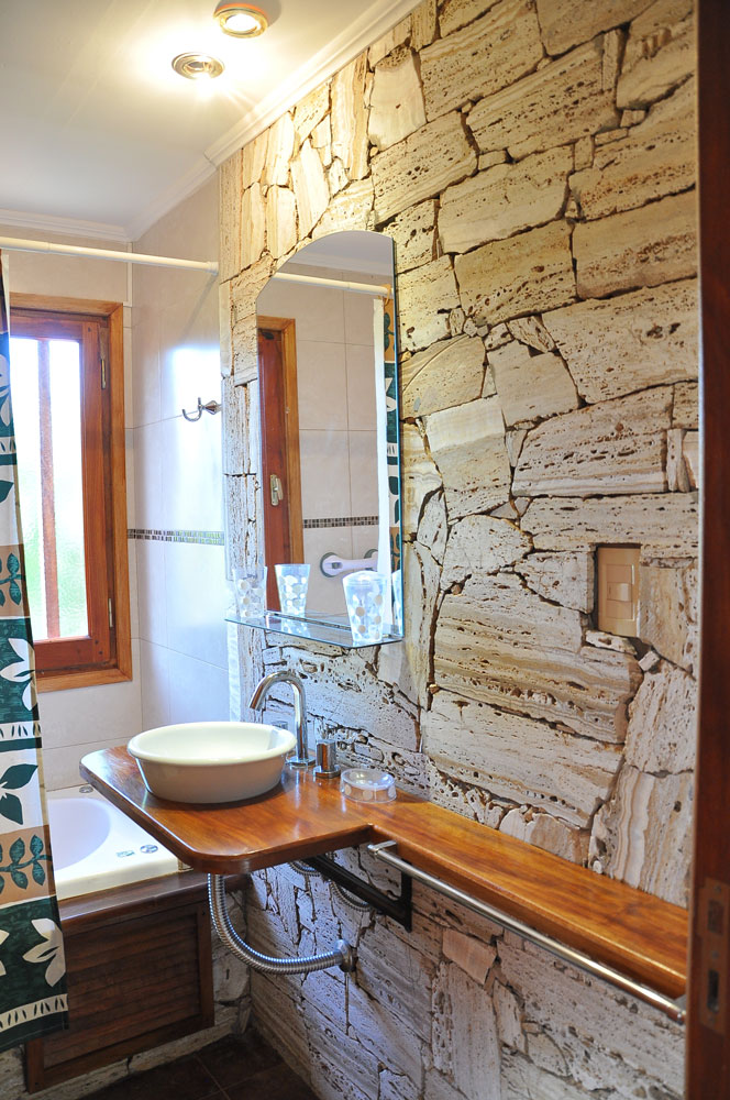 Las Cabañas Acantilados Golf están construidas con materiales de primera calidad y terminaciones artesanales, utilizando principalmente elementos de la Tierra, como piedra y madera. El interior cálido y delicadamente decorado armoniza con la paz exterior, comunicándose a través de amplísimos ventanales.
